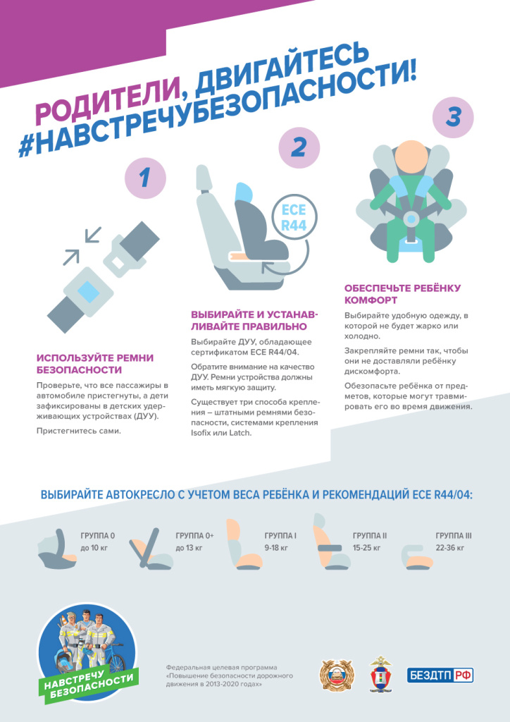 Здесь перед вами открывается обширное поле деятельности, так как примерно каждый третий ребёнок, ставший жертвой дорожно-транспортного происшествия, находился в качестве пассажира в автомобиле. Это доказывает, как важно соблюдать следующие правила: